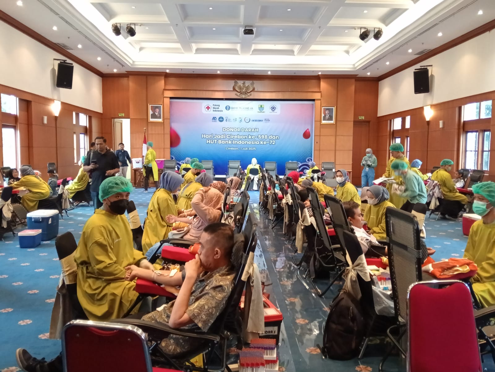 CIREBON – Palang Merah Indonesia (PMI) Kota Cirebon bersama dengan Kantor Perwakilan Bank Indonesia Cirebon raih predikat rekor MURI donor darah dengan peserta perbankan terbanyak yakni 1.300 kantong darah.