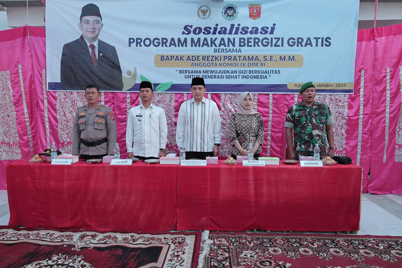 Kegiatan sosialisasi ini bertempat di Aula Pasar Rakyat Nagari Sungai Batang, Kecamatan Tanjung Raya pada Jumat (31/10). Turut hadir Anggota Komisi IX DPR RI, Ade Rizki Pratama, Direktorat Promosi dan Edukasi Gizi, Badan Gizi Nasional (BGN), Rahma Dewi Auliya Sari, serta ratusan masyarakat.
