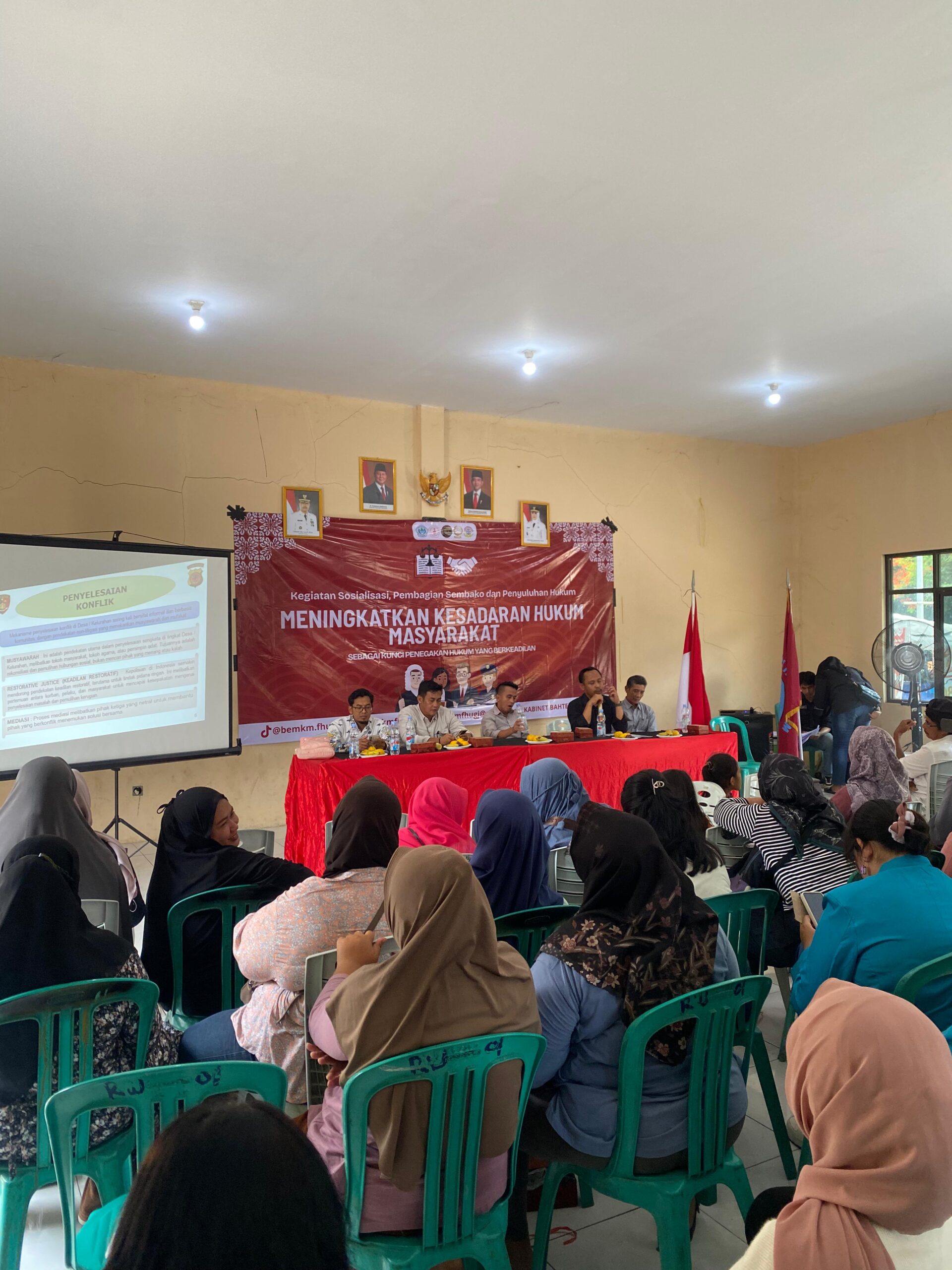 Kegiatan ini meliputi penyuluhan hukum, sosialisasi masyarakat, hingga pembagian paket sembako kepada warga.