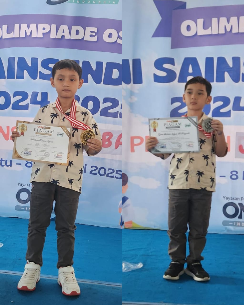 Maulana Kresna Sofyan (SD Kebon Baru 4 Kota Cirebon) Pemenang Medali Emas dan Emier Habibie Sofyan Al Fayyadh (SD Kebon Baru 4 Kota Cirebon) Pemenang Medali Perak dalam Lomba Omni Sains Indonesia (OSI) 2024-2025, tingkat SD Mata Pelajaran Matematika dalam babak penyisihan tingkat Jawa Barat menuju Nasional dan Internasional yang diselenggarakan Yayasan Pendidikan Omni Indonesia
