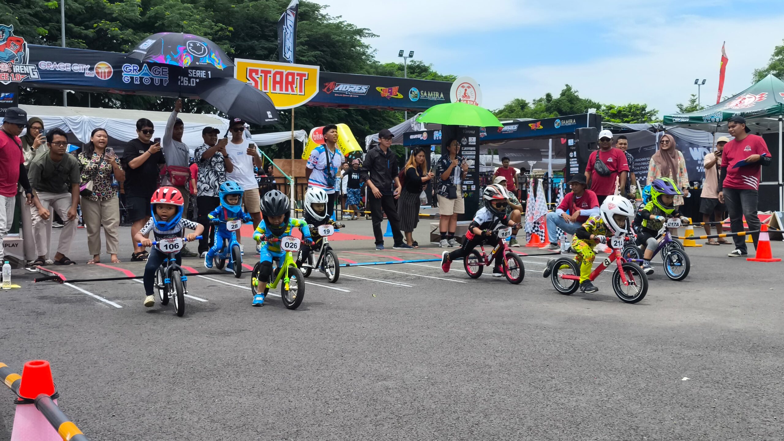 CIREBON – Ratusan peserta dari dalam dan luar negeri beradu cepat dalam kejuaraan Pushbike di sirkuit Grage City Mall, Kota Cirebon, Minggu (26/1/2025).