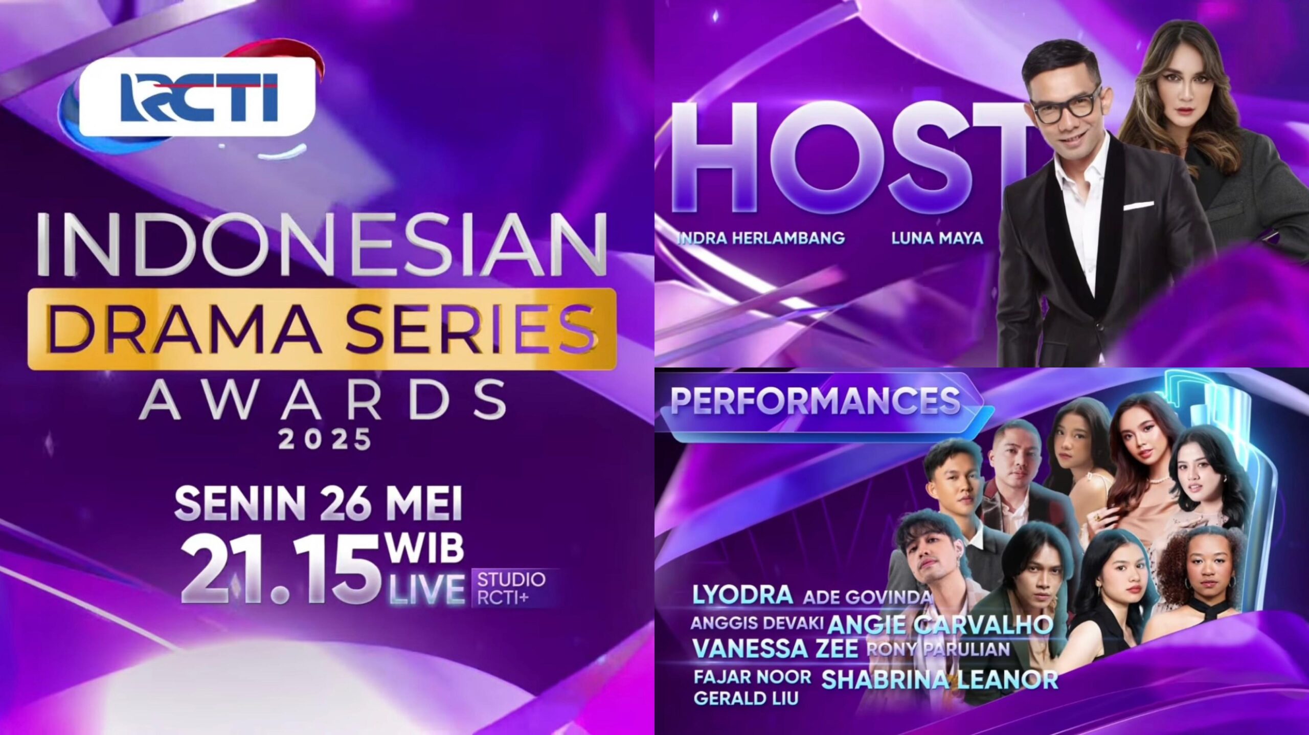 Jangan lupa saksikan Indonesia Drama Series Awards 2025, Senin, 26 Mei 2025, pukul 21.15 WIB disiarkan secara langsung di RCTI ‘Home of Awards’ hanya di kanal digital 41 UHF untuk pemirsa Bandung dan kanal digital 44 UHF untuk pemirsa Cirebon.