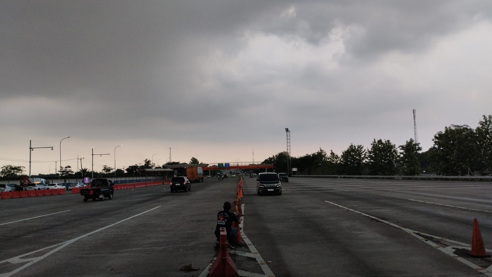 Situasi dan kondisi ruas Tol Cipali, GT Palimanan, KM 188 yang masih terpantau landai pada Selasa (26/12/2023) pukul 16.00 WIB. Foto: Dialog/Sarrah