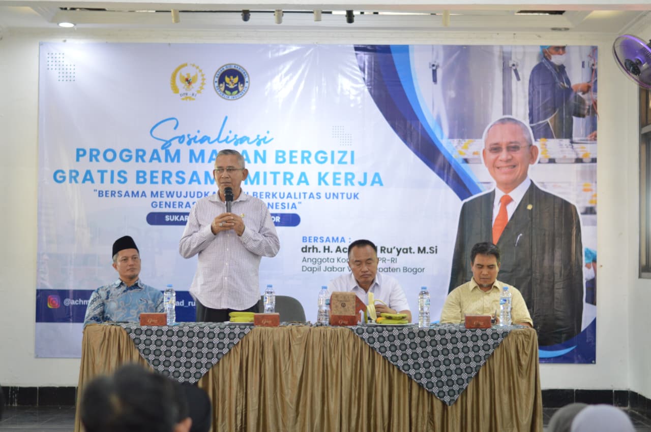 Anggota Komisi IX DPR RI, Achmad Ru’yat, dalam sambutannya menjelaskan bahwa program MBG merupakan realisasi dari janji kampanye Presiden RI Prabowo Subianto. Program MBG akan fokus memberikan kebermanfaatan untuk masyarakat.