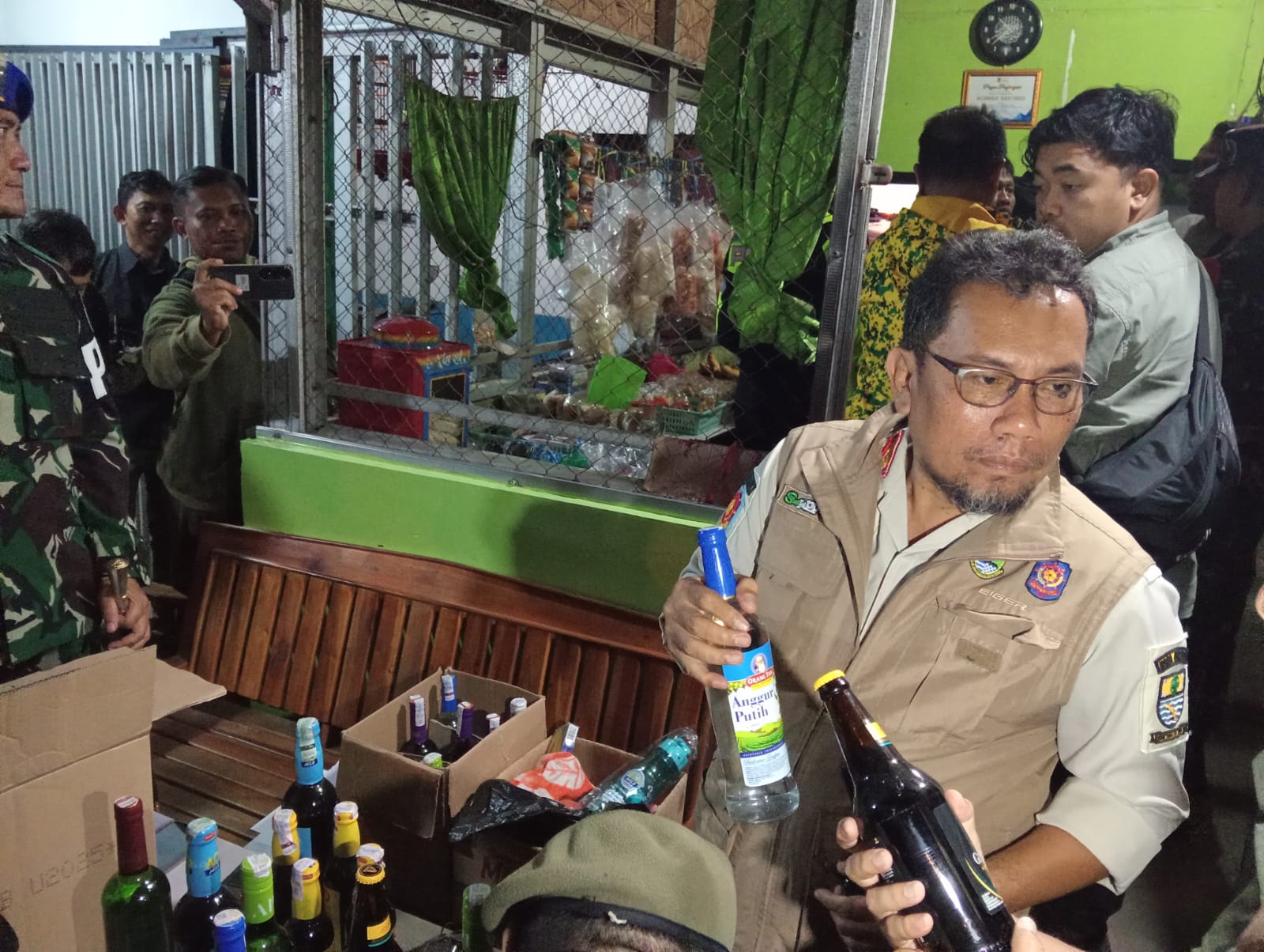 CIREBON – Forum komunikasi pimpinan daerah (Forkopimda) Kota Cirebon mengamankan puluhan botol miras saat razia jam malam.
