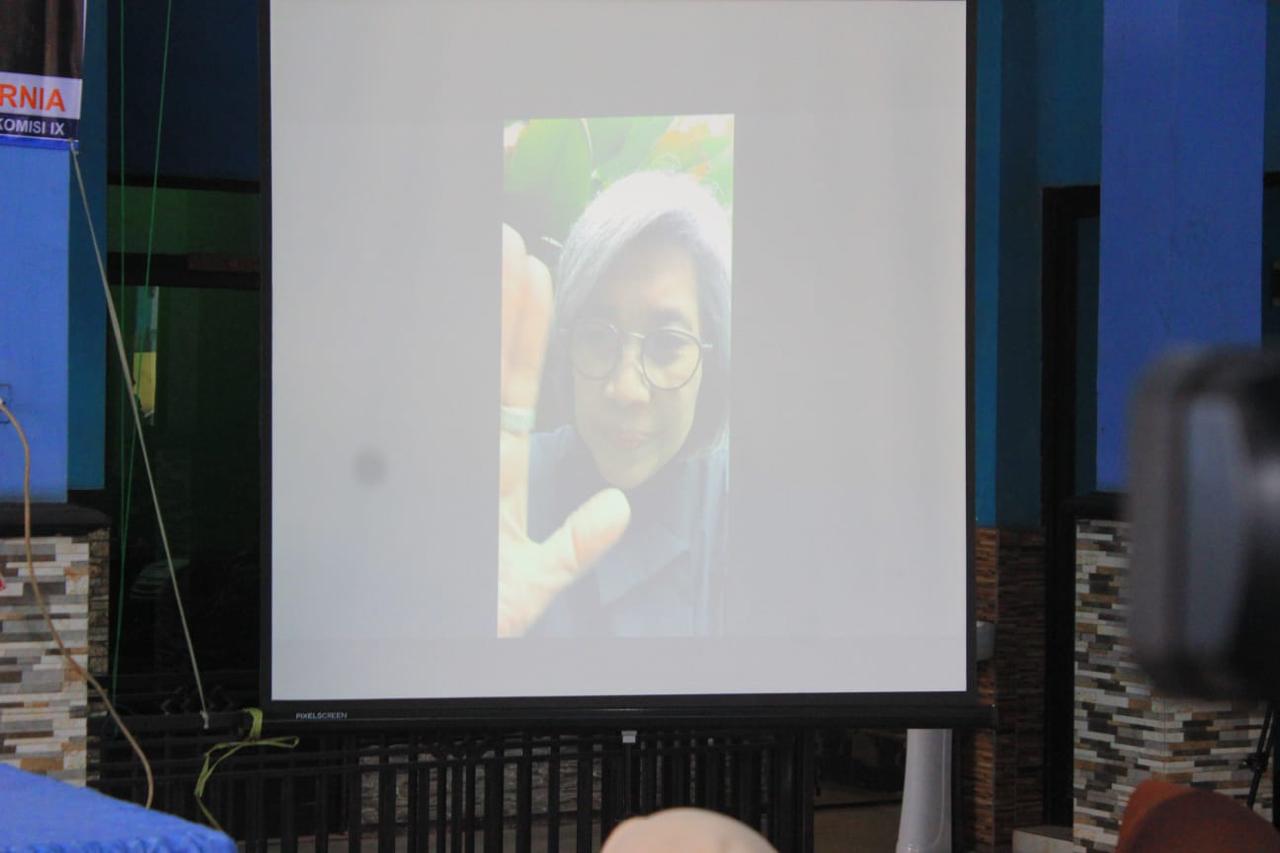 Kegiatan ini menghadirkan Anggota Komisi IX DPR RI, Indah Kurniawati, yang menyapa masyarakat secara daring melalui Zoom.
