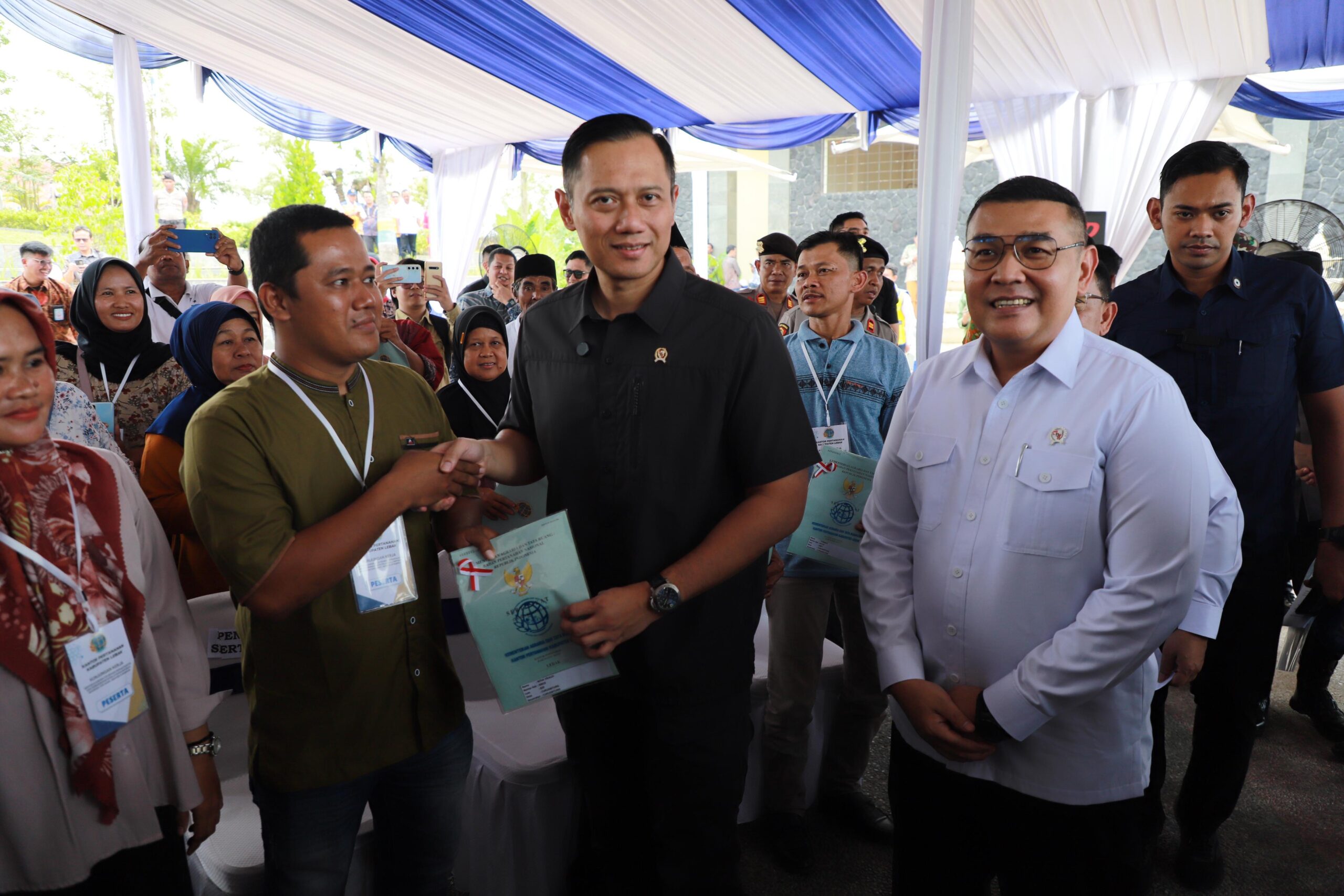 Pada kesempatan tersebut, Wamen ATR/Waka BPN bersama Menteri Koordinator Bidang Infrastruktur dan Pembangunan Kewilayahan, Agus Harimurti Yudhoyono (AHY), menyerahkan 14 sertipikat tanah wakaf. “Sertipikat tanah wakaf ini mencakup untuk masjid, musala, pondok pesantren dan tempat ibadah lainnya,” tambah Ossy Dermawan.