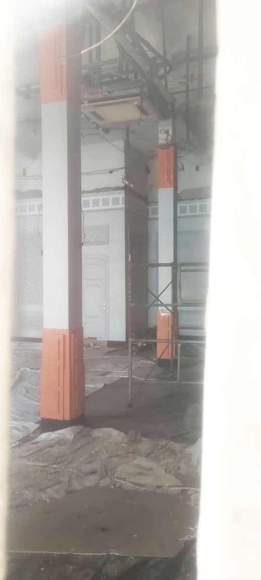 Berdasarkan pantauan di lapangan, plafon dari ruang Adipura tersebut dibongkar seluruhnya hanya tampak 2 air conditioner (AC) berbentuk kotak saja yang tersisa.